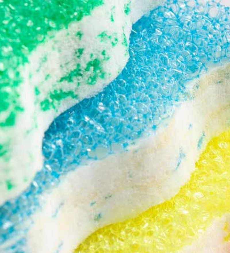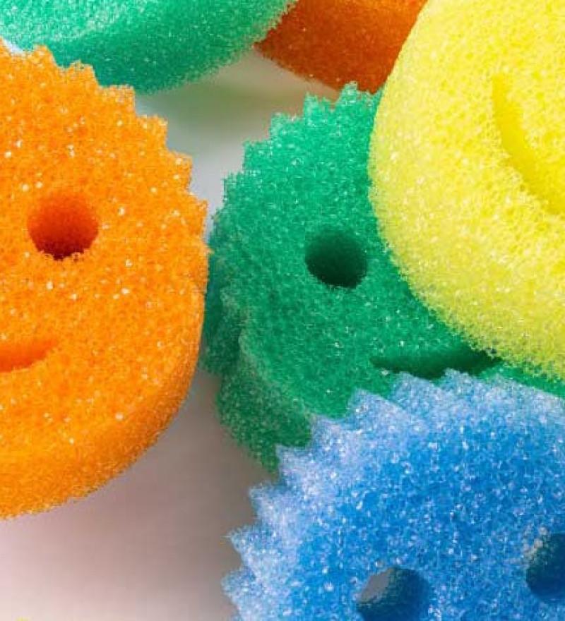 Firm in cold water for tough scrubbing and soft in warm water for light cleaning..