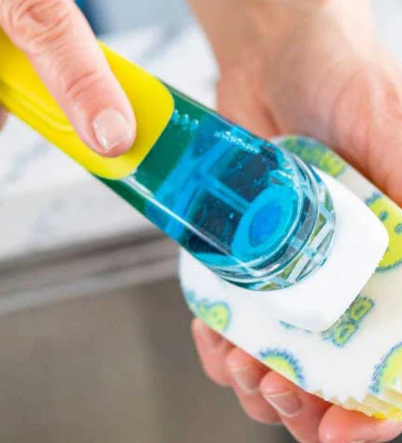 Self- Standing Soap Dispensing DishwandFlexTexture foam head is soft in warm water and firm in cool for more cleaning power.Scratch-free on common sur..